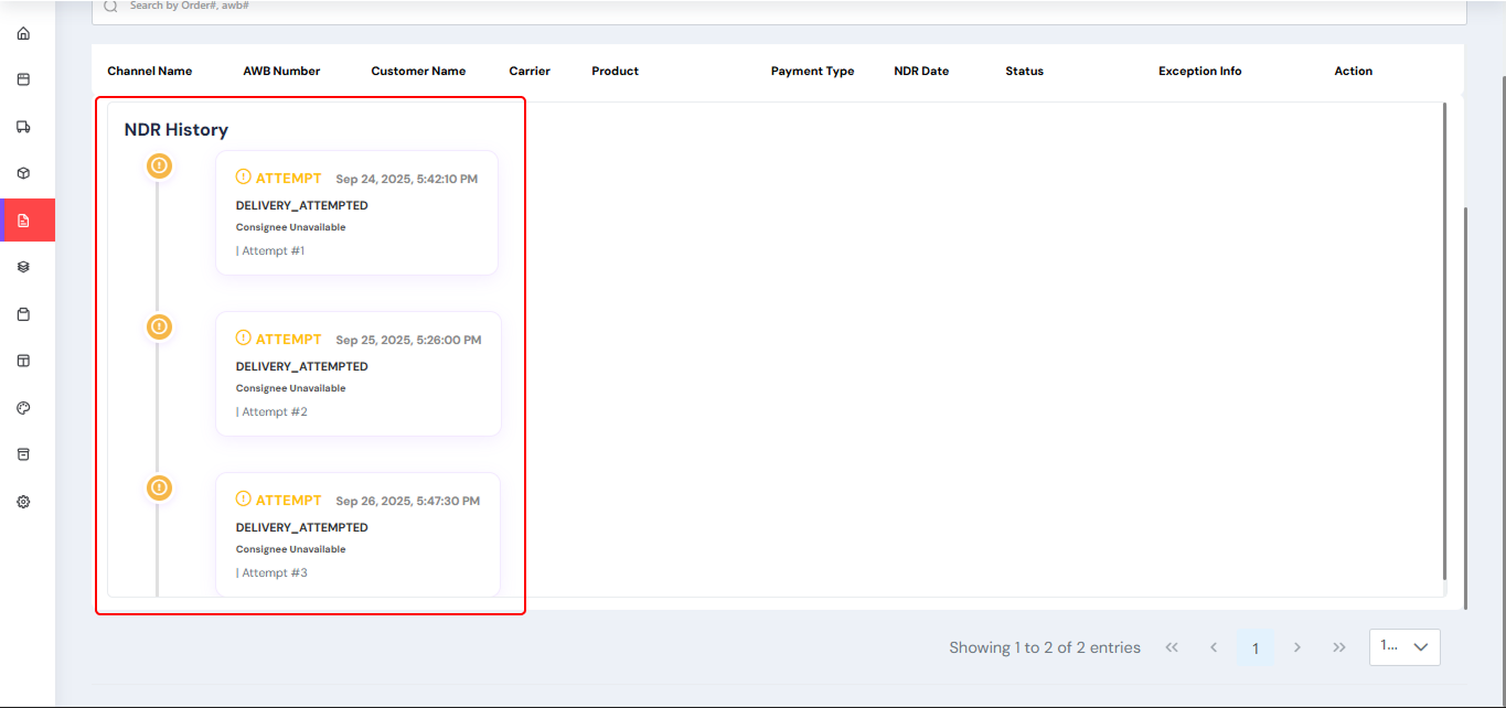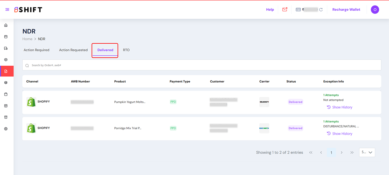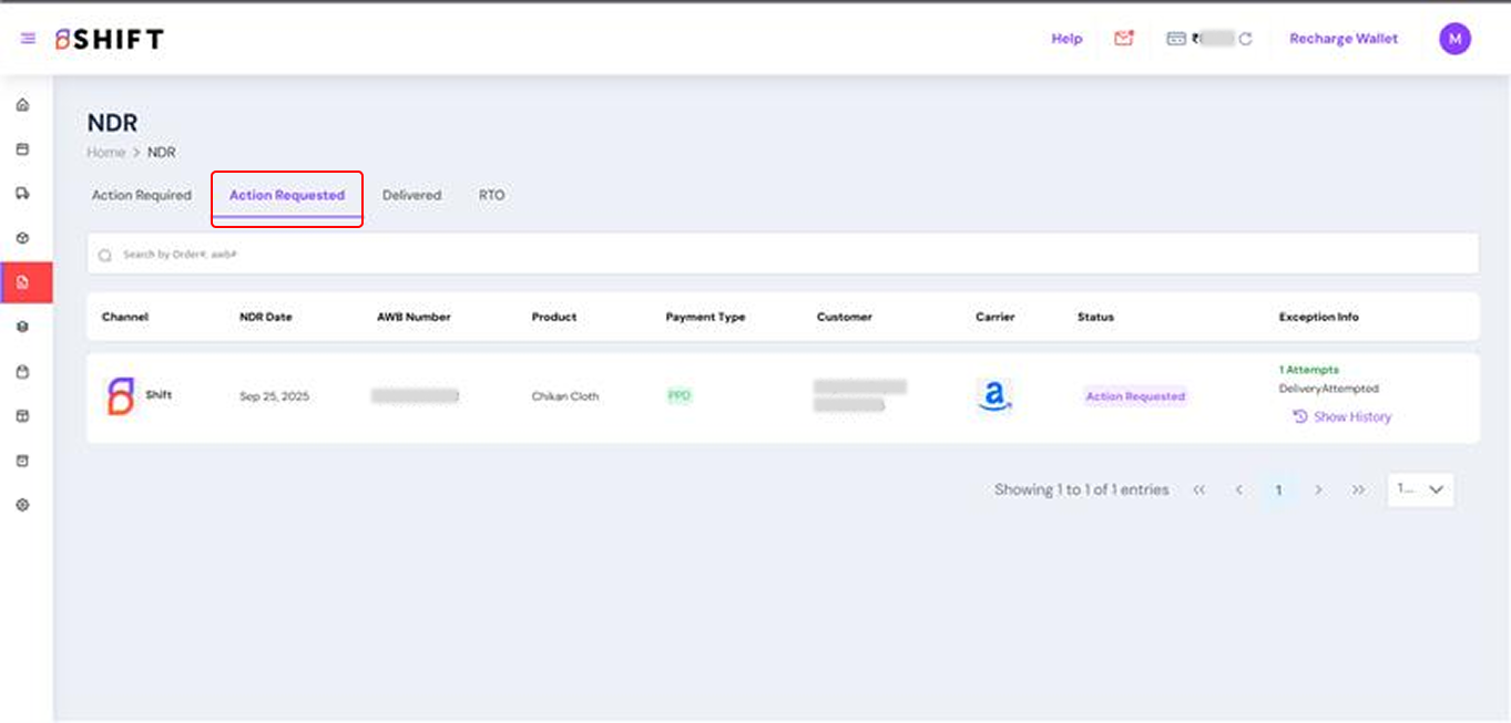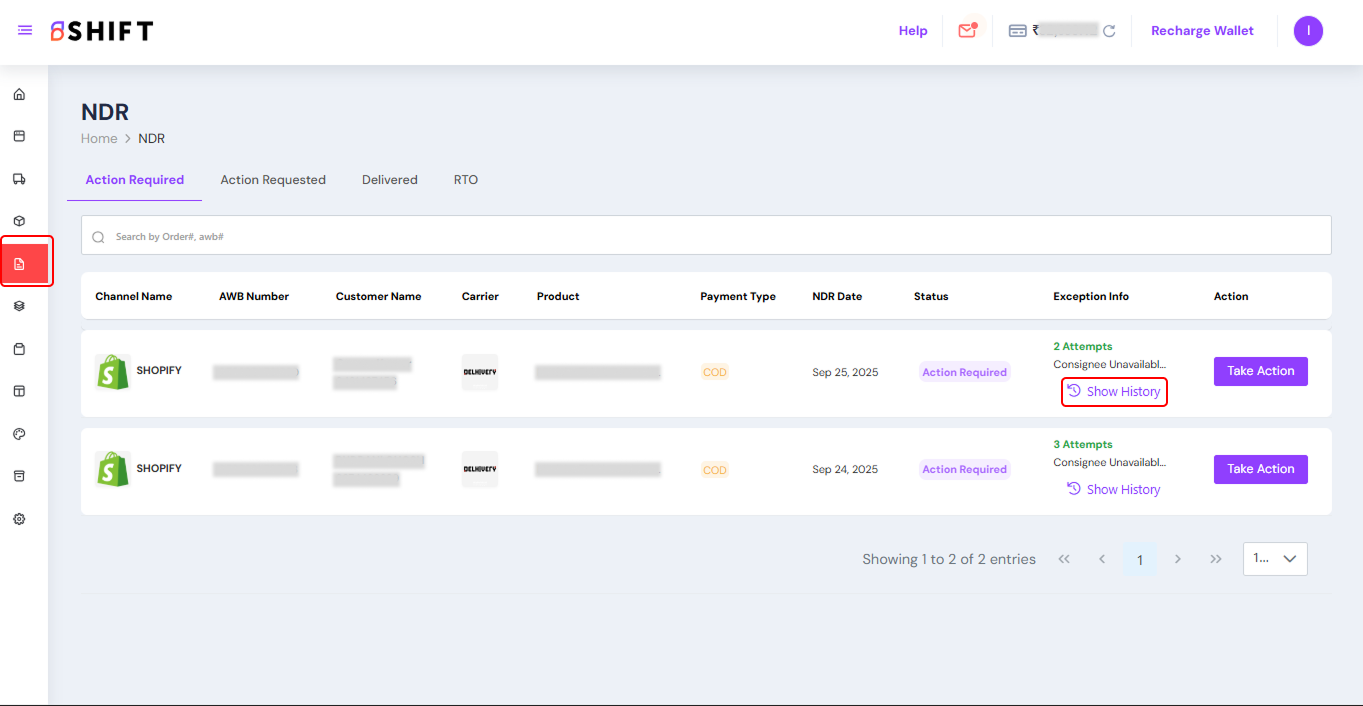 This tab shows shipments that need your immediate attention. For example, reattempting delivery or initiating a Return to Origin (RTO). Taking quick action here helps prevent delays and reduce RTO cases.